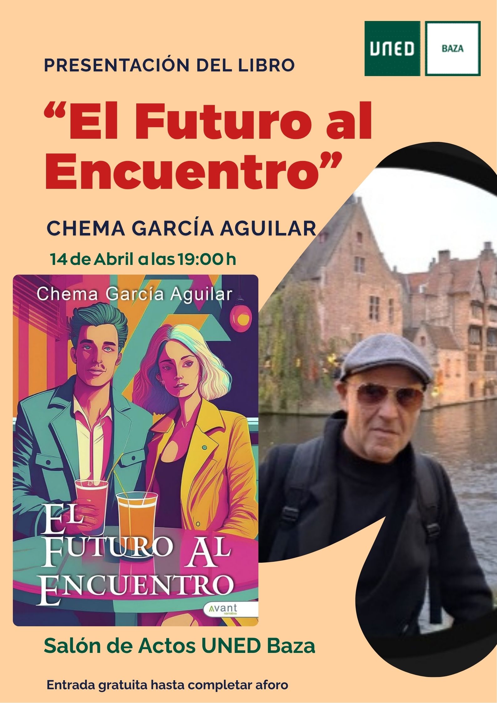 El martes 14 de abril a las 19:00 horas en el Salón de Actos del Centro Universitario UNED Baza, se llevó a cabo la presentación de "El Futuro al Encuentro" obra de Chema García Aguilar y en el que narra su adolescencia con decenas de anécdotas propias de la época lo que hace una lectura ágil y divertida sobre esa etapa de la historia.