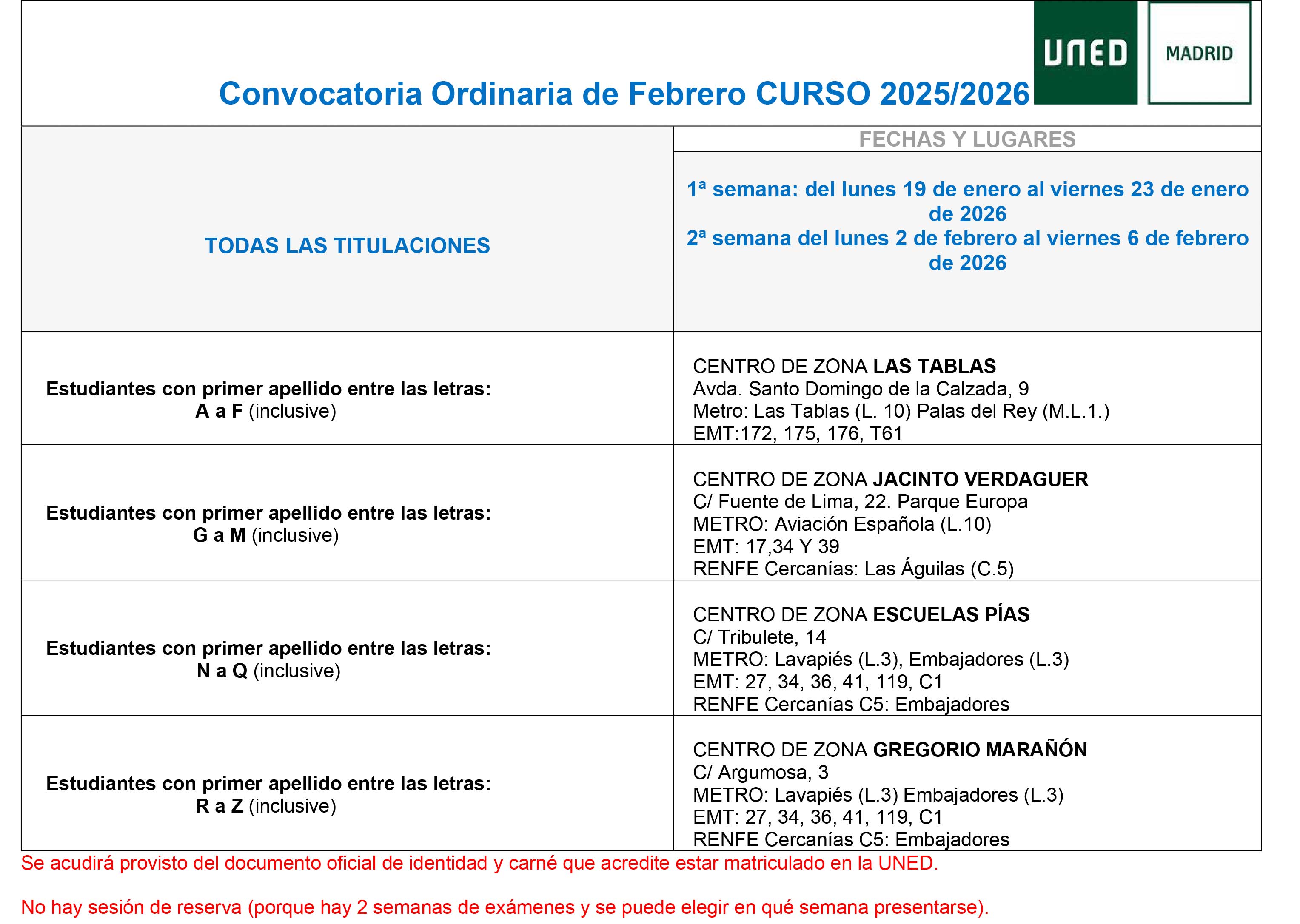 » Sede de Pozuelo de Alarcón (Centro Educacional Reyes Católicos: Av. Juan XXIII, 4, 28224 Pozuelo de Alarcón, Madrid). Puede solicitar el cambio a esta sede para la Convocatoria de enero-febrero 2026 rellenando el formulario, se admitirán solicitudes hasta completar aforo.