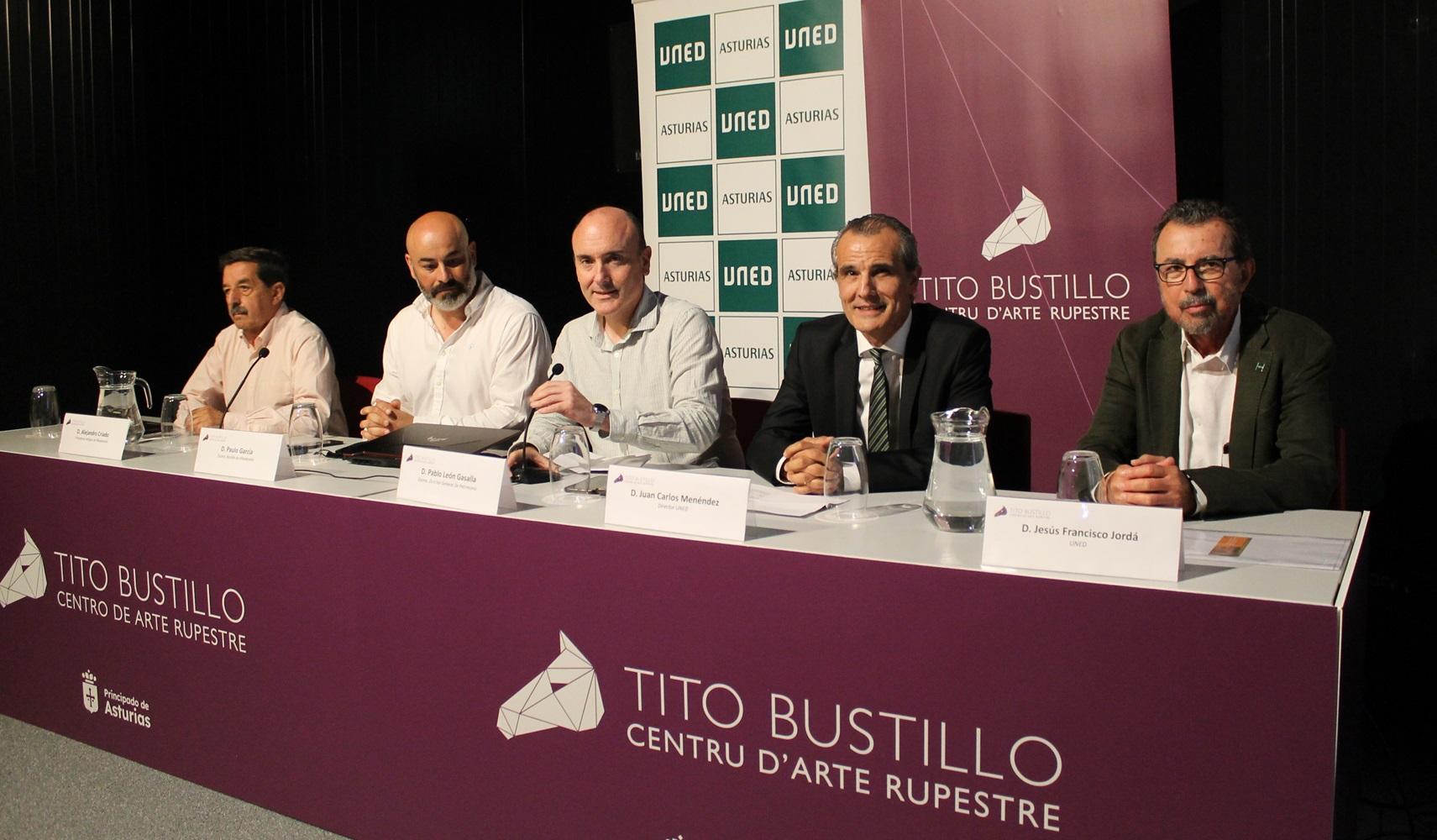 UNED Asturias ha inaugurado la cuarta edición del curso de verano “150 años de investigaciones prehistóricas en el valle del Sella, Asturias”, dirigido por Jesús F. Jordá (UNED) y coordinado por Esteban Álvarez (Universidad de Salamanca), que se desarrolla en el Centro de Arte Rupestre de Tito Bustillo. El acto inaugural lo ha presidido el director general de Cultura y Patrimonio del Principado de Asturias, Pablo León Gasalla, que ha estado acompañado por el alcalde de Ribadesella, Paulo García Díaz; el director de UNED Asturias, Juan Carlos Menéndez Mato; el presidente de la Asociación Cultural de Amigos de Ribadesella, Alejandro Criado; y el director del curso, Jesús Jordá.