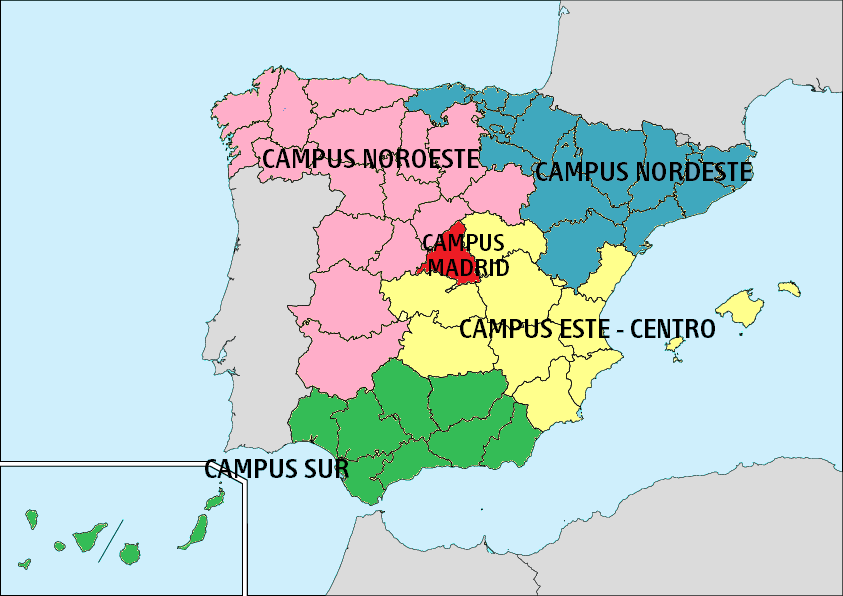 Los 62 centros asociados de la UNED se agrupan en 9 redes territoriales o campus.