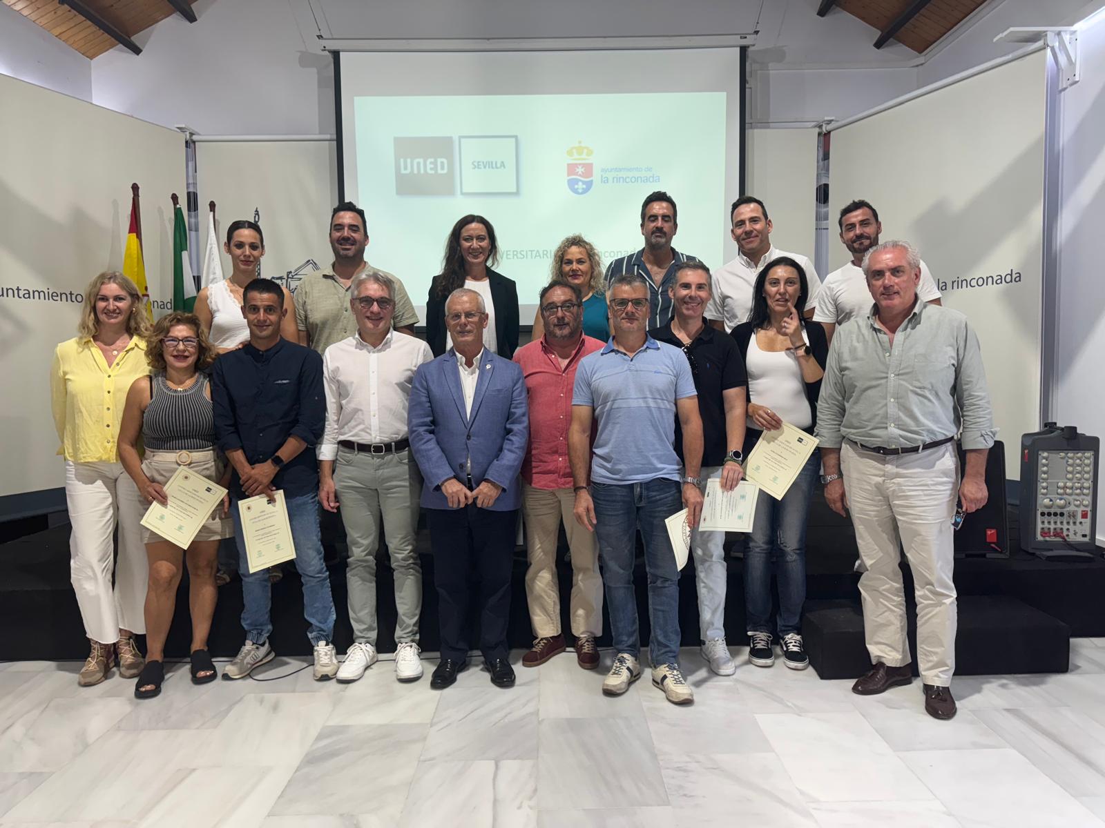 Los estudiantes del curso de acceso de La Rinconada han recibido en el día de hoy un reconocimiento por haber superado dichos estudios. En dicho acto ha estado Dña. Georgina Guisado Martín (Secretaria y Coordinadora Académica del Centro UNED de Sevilla) y Dña. Maite Miranda (coordinadora del Aula de extensión Universitaria de La Rinconada), donde se les ha hecho entrega de un diploma de reconocimiento por el logro alcanzado.