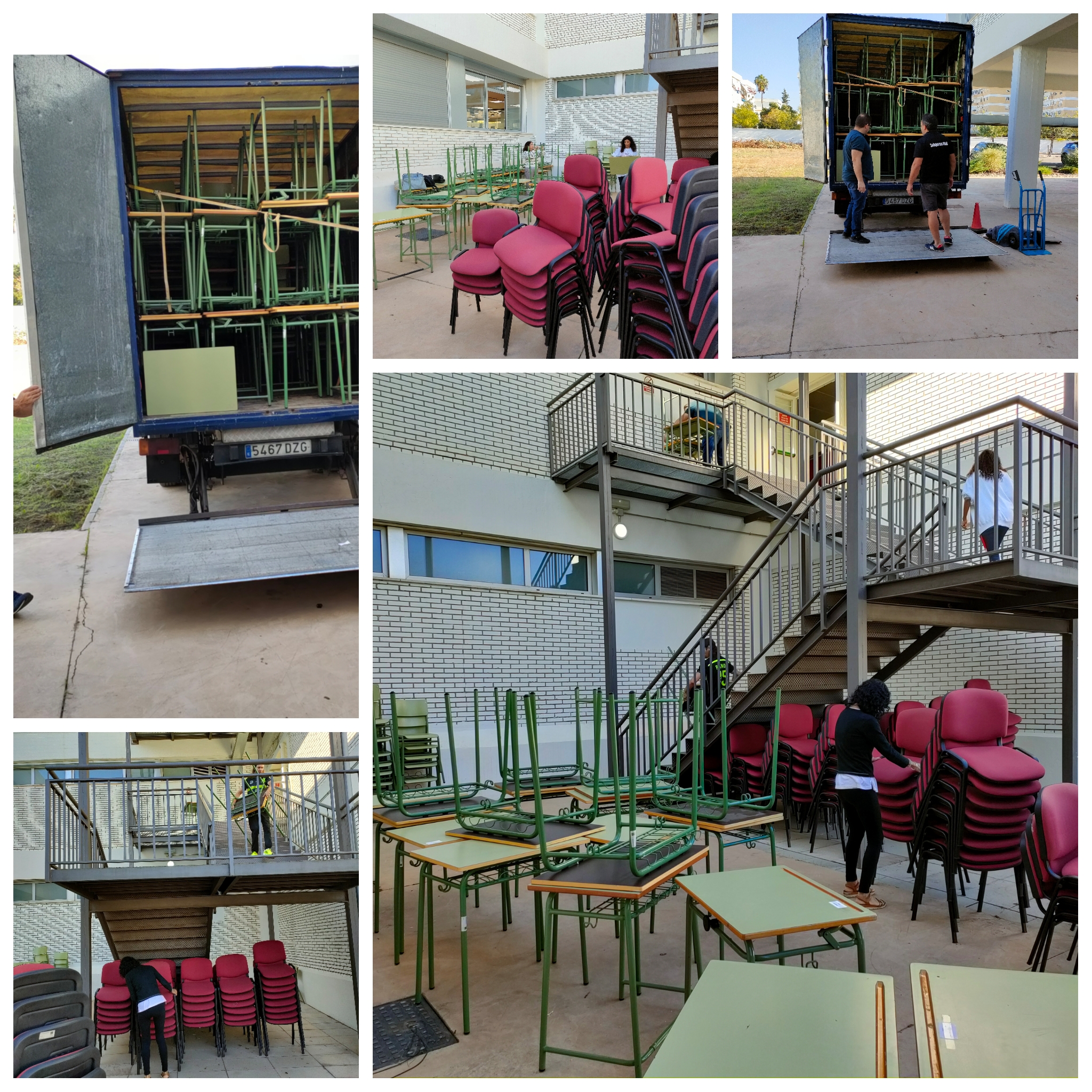 En el procreso de renovación de parte del mobiliario del Centro UNED de Sevilla, adaptándo este a las necesidades de los estudiantes universitarios de dicha institución, ha donado todo el mobiliario que se usaba hasta el momento, el cual estaba en perfecto estado, a dos centros educativos de secundaria y bachillerato para que estos puedan seguir usándolos y sacádole el mejor partido posible. Los centros acudieron a las instalaciones de la UNED-Sevilla y recogieron todo el mobiliario, agradeciendo la acción llevada a cabo y el hacer que un mobiliario en buen estado pudiera seguir teniendo vida con su uso en las nuevas aulas donde irán colocados.