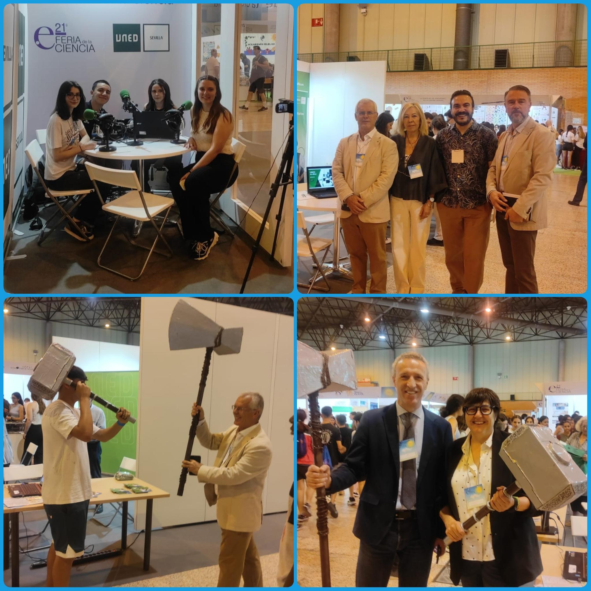 Los días 10, 11 y 12 de mayo se celebra en FIBES (Sevilla) la 21ª Feria de las Ciencias, en donde la UNED como institución universitaria y el centro UNED-Sevilla participan con un stand para dar a conocer la institución y su departamento de ciencia y tecnología. A dicho acto han acudido autoridades de la ciudad de Sevilla, el vicerrector D. Jesús de Andrés (Centros Asociados), Dña. Yolanda Peña (vicerrectora de divulgación científica), D. Eladio Bodas (Director de UNED-Sevilla), Dña. Georgina Guisado (Secretaria de UNED-Sevilla) y Dña. María José Corral (Coordinadora del COIE UNED-Sevilla).