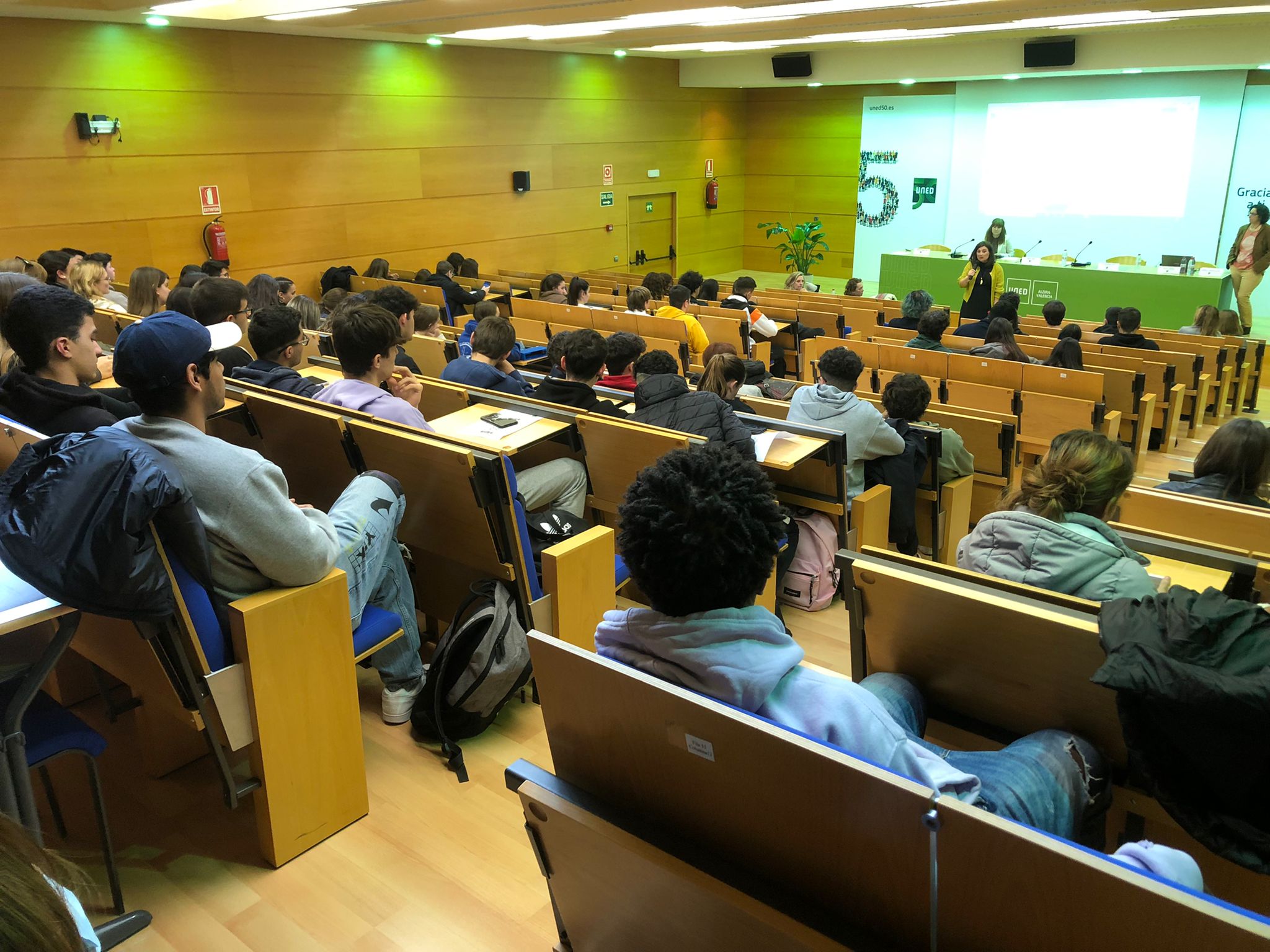 La jornada se desarrolló de forma híbrida, con unos 150 estudiantes de 1º y 2º de bachillerato que acudieron presencialmente de dos institutos, el IES Número 26 de Valencia y el IES Doctor Baustí Barberá de Alaquàs junto con 2 y 3 profesores, respectivamente. Dado que la jornada se retransmitió en directo a través de la Cadena Campus de la UNED, también hubo otros institutos que se conectaron de forma online, como el colegio El Almeral de Paterna, que participó activamente en el chat con preguntas. También asistieron algunos estudiantes de 4º de la ESO que vinieron de forma independiente con sus padres tras ver la publicación en prensa anunciado la jornada.