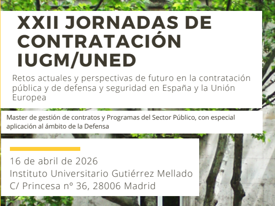 El jueves 16 de abril se celebraron en el Instituto Universitario General Gutiérrez Mellado (IUGM/UNED) las XXII Jornadas de Contratación del Máster de Gestión de Contratos y Programas del Sector Público, bajo el título: “Retos actuales y perspectivas de futuro en la contratación pública y de defensa y seguridad en España y la Unión Europea”.
