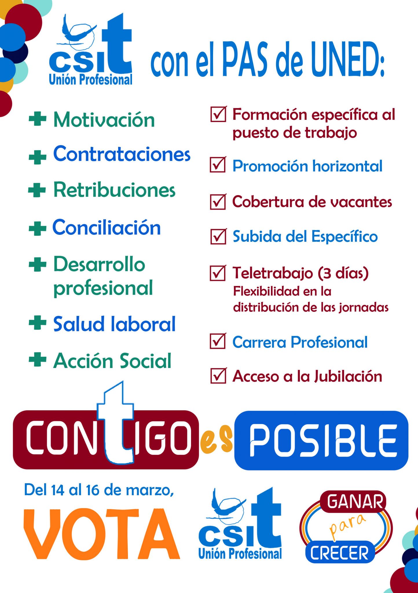 - CSIT UNIÓN PROFESIONAL es el único movimiento que ha nacido en la UNED entre sus trabajadores con el único objetivo de defender al PAS y sin otro interés que salvaguardar sus derechos desde la independencia y libertad tan necesaria a la hora de negociar.