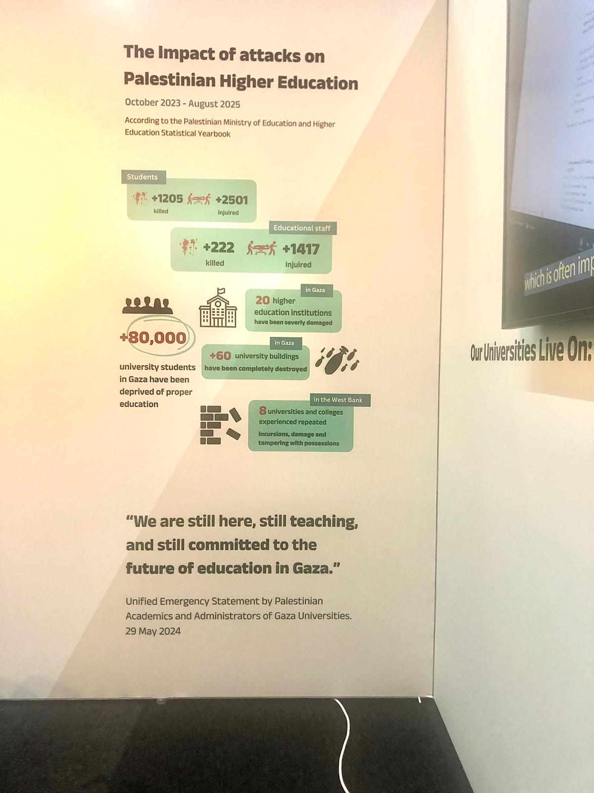 La edición de Gotemburgo estuvo marcada además por la difícil situación de la educación superior en Palestina, donde la destrucción deliberada de infraestructuras educativas pone en riesgo el futuro académico de miles de estudiantes. La UNED mantuvo conversaciones con representantes de Friends of Palestinian Universities para conocer sus iniciativas y el trabajo del Comité de Emergencia de Universidades en Gaza en defensa de la educación superior en Palestina. Este acercamiento se alinea con el compromiso de la UNED de escuchar, aprender y participar en esfuerzos que fortalezcan la educación como motor de resiliencia y esperanza en contextos de crisis.