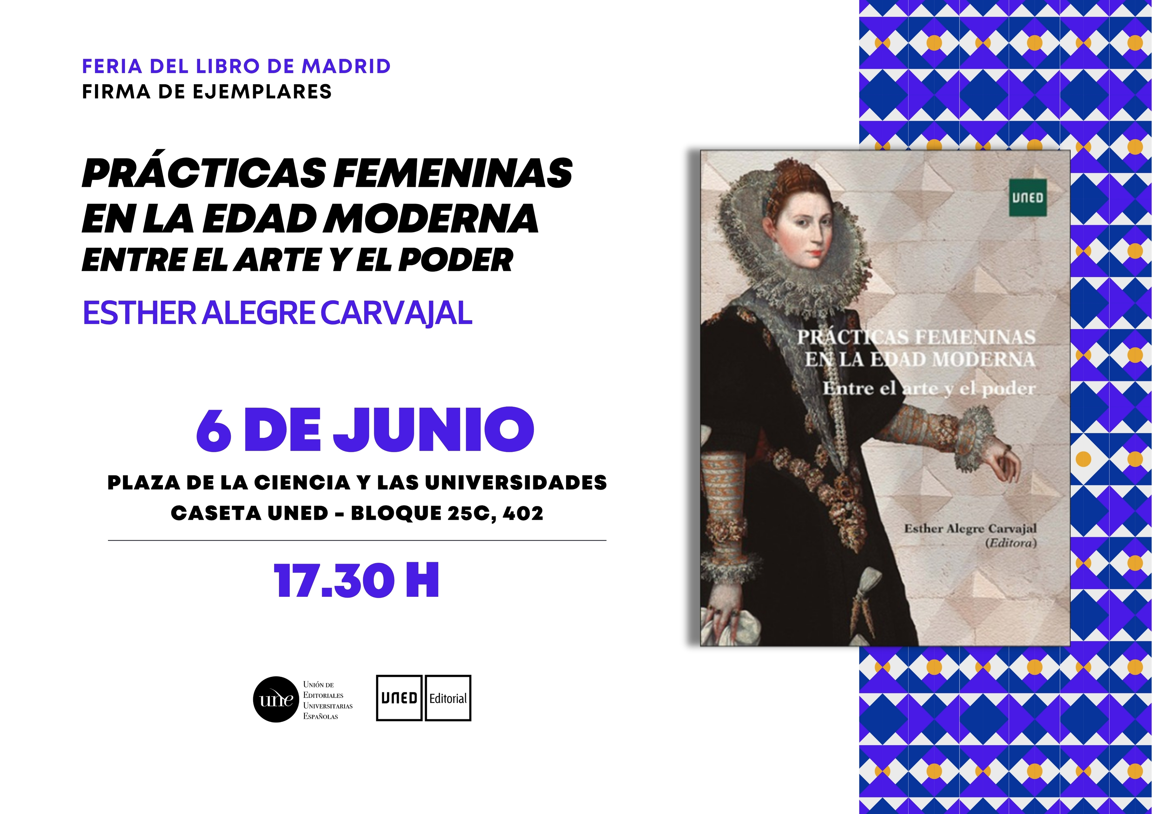 Dentro de las actividades de la Feria del Libro de Madrid 2025, el día 6 de junio a las 17:30 h. la autora, Esther Alegre Carvajal, firmará ejemplares de su libro Prácticas femeninas en la Edad Moderna. Entre el arte y el poder en la caseta de la Editorial UNED n.º 402, bloque 25C situada en la plaza de la Ciencia y de las Universidades.