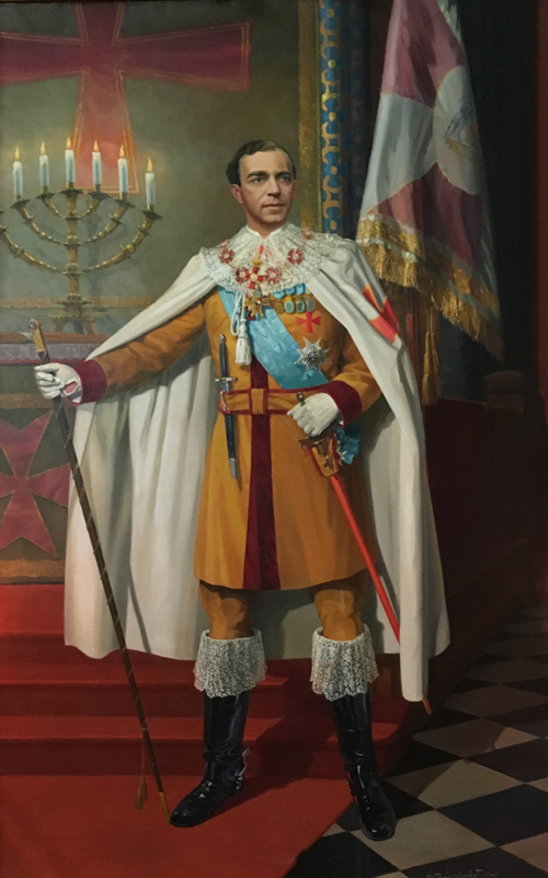 El príncipe heredero Gustavo Adolfo (1934-1947) como diputado gran maestre de la Orden de Carlos XIII (Palacio Baatska, Estocolmo, sede de la Gran Logia de Suecia).