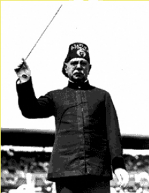 John Philip Sousa Trinkhau nació en Washington D.C. el 6 de noviembre de 1854 y murió el 6 de marzo de 1932 en la localidad de Reading (Pensilvania, EE.UU.). Fue un destacado marine, compositor y director de marchas militares estadounidense durante el Romanticismo tardío siendo reconocido con el nombre “El Rey de las Marchas” por sus composiciones musicales militares. Fue el tercero de diez hijos fruto del matrimonio de J. A. de Sousa y M. E. Trinkhau. A los seis años aprendió a tocar el violín, y con trece, su padre le enroló en el Cuerpo de Marines como sirviente hasta 1875. Allí empezó a componer con distintos instrumentos de viento sin abandonar su favorito, el violín. Posteriormente J. P. Sousa abandonó su aprendizaje en el Cuerpo de Marines, estableciendo su nuevo trabajo en una orquesta de teatro donde dirigió diversas composiciones musicales. Por ello, al poco tiempo retornó como director de la Banda de los Marines y del Liceo, “Gonzaga College High School”. A partir de 1892, constituyó su propia banda nombrada “La Banda de Sousa” con la que realizó diversas giras musicales por todo el país, siendo posteriormente elegida para representar a su nación en la Exposición Universal de París de 1900. Aun así J. P. Sousa, como hombre humilde, quiso mantenerse al margen y no se publicitó hasta 1929, tras ser persuadido por los medios de comunicación estadounidenses. Finalmente murió a los 77 años por un cáncer de pulmón mientras realizaba un ensayo de su magna obra “Stars and Stripes forever” en Pensilvania.