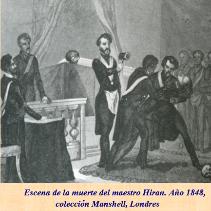 Según describe la leyenda masónica, el rey Salomón había confiado a un arquitecto llamado Hiram, de origen tirio, la dirección de las conteras para la construcción del Templo de Jerusalén. Este arquitecto fenicio estableció una escala jerárquica entre los constructores que tenía a sus órdenes dividiéndolos en aprendices, compañeros y maestros. Una palabra misteriosa permitía a los maestros reconocerse entre sí y distinguirse de los demás. Un día, cuando Hiram inspeccionaba a solas el estado de los trabajos, tres compañeros criminales le tendieron una emboscada para tratar de arrancarle aquella palabra y, ante su negativa, lo asesinaron. El primero le golpeó con su regla, el segundo con su escuadra y el tercero lo derribó de un mazazo en plena frente. Los masones fieles, al cabo de una búsqueda dolorosa, descubrieron el cadáver en un otero del que brotaba una rama de acacia. La leyenda termina con la resurrección del cadáver de Hiram, gracias a la realización de ciertos gestos rituales. Los criminales de la leyenda representaban la ignorancia, el fanatismo y la ambición, por tanto, la instrucción, la tolerancia y el perfeccionamiento moral debían ser los pilares fundamentales del Templo de Salomón. El edificio a construir, simbolizado por dicho Templo, exigía la muerte del hombre viejo y un renacer de un hombre nuevo.