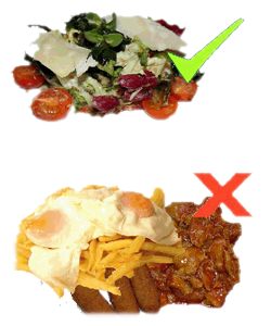 Los alimentos se cocinarán con la mínima grasa posible, prefiriendo la cocción, el asado o la plancha a la fritura. En caso de freír los alimentos, se utilizará preferentemente aceite de oliva que además de soportar mayores temperaturas sin desnaturalizarse, forma una capa superficial alrededor de los alimentos protegiendo su textura interna y sin dejar escapar sus jugos. En los guisos, una vez enfriados retirar la capa superficial solidificada de grasa (que es siempre saturada) antes de servirlos.- Evita los alimentos procesados porque pueden contener grasas de dudoso origen. En caso de consumir alimentos procesados, leer atentamente las etiquetas de información nutricional