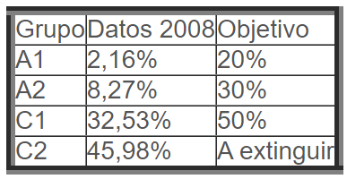 - Que la estructura de plantillas se reestructure hasta alcanzar las siguientes proporciones entre grupos: