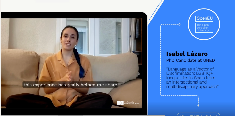 Isabel Lázaro Bueno, estudiante del programa de doctorado Sociología Cambio Social en Sociedades Contemporáneas, presentó de forma virtual su investigación, titulada “Language as a Vector of Discrimination: LGBTIQ+ Inequalities in Spain from an Intersectional and Multidisciplinary Approach”. Su tesis está dirigida por la Dra. María Miyar Busto, profesora de la Facultad de Ciencias Políticas y Sociología de la UNED, y codirigida por el Dr. Héctor Cebolla Boado, del CSIC.