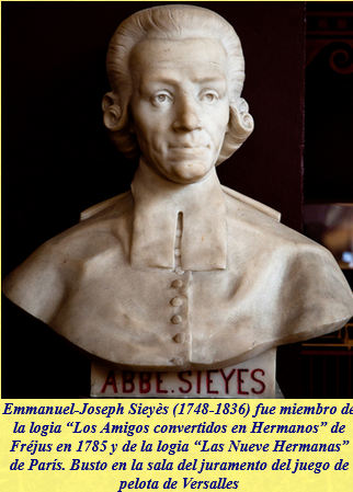 Emmanuel-Joseph Sieyès, conde Sieyès (Fréjus, 3 de mayo de 1748 - París, 20 de junio de 1836) fue un político, eclesiástico, ensayista y académico francés. Nació en Fréjus, sur de Francia, y se formó en el seminario de Saint-Sulpice, París, y en la Sorbona. Se vio imbuido de las enseñanzas de John Locke, Étienne Bonnot de Condillac y otros pensadores políticos con especial preferencia por la Teología. Sacerdote a pesar de sus pocas convicciones, su aprendizaje le permitió una rápida promoción a vicario general y canciller de la diócesis de Chartres.