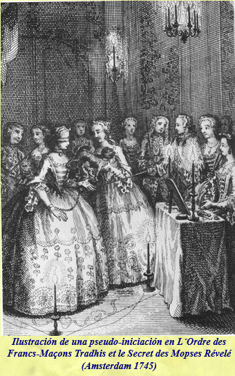 Un buen ejemplo de este sistema descalificador es el conocido manuscrito epistolar intitulado La Hermandad de las Costureras Libres (The Sisterhood of Free Sempstresses) publicado por primera vez como una carta anónima enviada al semanario inglés Read's Weekly Journal el 25 de enero de 1724. Es posible que el documento haya sido alguna reacción irónica de alguien tras la publicación de El Gran Misterio de los Francmasones al descubierto (The Grand Mystery of Free-Masons Discovered) impreso en Londres, 1724 por T. a modo de catecismo masónico de tipo folletinesco y sarcástico en la línea conspiratoria. El texto apareció apenas un año después de la publicación de las Constituciones de Anderson pretendiendo revelar los secretos de la recientemente creada Francmasonería especulativa: sus signos, formas de reconocerse, palabras secretas, etc.