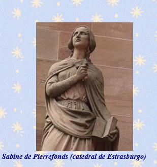 La tradición popular considera que Sabine de Steinbach (en francés; Pierrefonds), fue hija de Hervé de Pierrefonds, más conocido por su nombre germánico de Erwin de Steinbach, constructor principal de la Catedral de Estrasburgo. Sabine esculpió algunas de las notables estatuas de Notre Dame de París, y a su vez en tanto que Maestra de Obras, formó aprendices en su oficio.