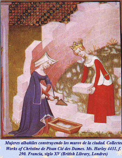 - En el Rollo de Pagos de la construcción del Caernarvon Castle (1304-5) realizados por el chambelán Thomas de Esthall, con visado y testimonio del Maestro Masón Walter de Heresford, Master of the Works, así como también en el “Account Book of the new haven, Chester- 1567-8” figuran muchas mujeres realizando tareas de construcción igual que el hombre.