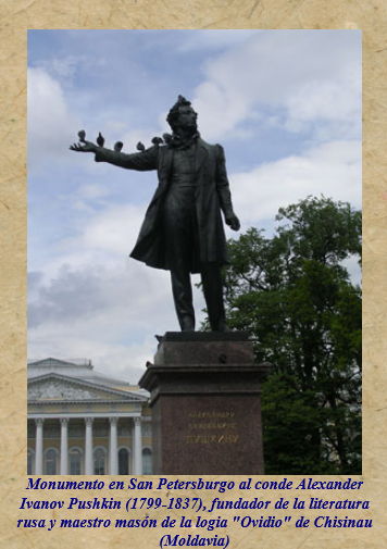 rusa moderna y maestro masón de la logia "Ovidio" de Chisinau (Moldavia) fue pionero en el uso de la lengua vernácula en sus obras creando un estilo narrativo mezcla de drama, romance y sátira que fue desde entonces asociado a la literatura rusa e influyó en posteriores figuras literarias como Gógol, Dostoyevski, Tolstói, así como en los compositores rusos Tchaikovski y Músorgski.
