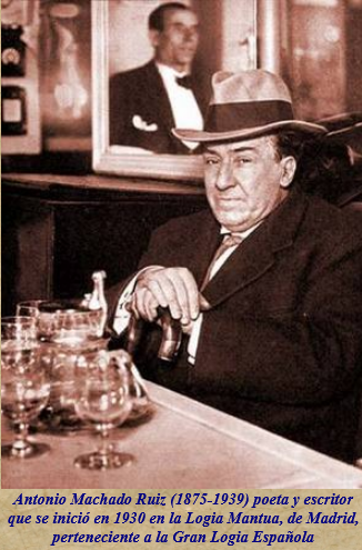 “Uno de los grandes espíritus generosos, llenos de amor por la humanidad y de simpatía por sus semejantes, fue el poeta español Antonio Machado, figura cumbre de la poesía española contemporánea y de todos los tiempos. Machado antes de ingresar en la logia Mantua, logia madrileña de la Gran Logia Española, había mostrado siempre en todos y cada uno de sus poemas ese mismo espíritu fraternal por todo lo creado, por las criaturas humanas y por los otros seres de la naturaleza animada e inanimada, que constituye el fondo del alma masónica”.