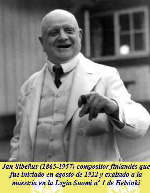 No fue hasta 1922 cuando se estableció la nueva Logia de Finlandia (Suomi loosi). En la lista de candidatos previos estaban las más grandes figuras de la sociedad finesa, como el general Mannerheim (que gobernó el país desde la Guerra Civil hasta la Constitución de 1918), el Arzobispo de Helsinki Gustaf Johansson, el arquitecto Lars Sonck, el pintor Pekka Halonen y los compositores Robert Kajanus y Jan Sibelius. Sibelius fue iniciado en agosto de 1922.