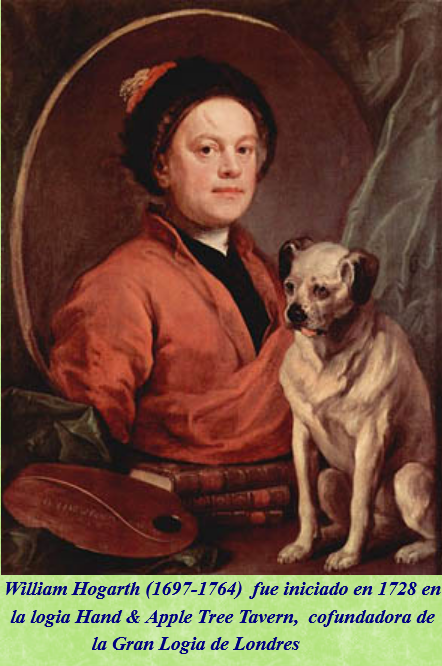 Fue iniciado en masonería en 1728 en la logia “Hand & Apple Tree Tavern”, una de las cuatro pequeñas logias que se unieron para fundar en 1717, la Gran Logia de Londres. Años más tarde, W. Hogarth se afilió a distintos talleres masónicos; “Carrier Stone Lodge” y “The Grand Stewards Lodge” siendo nombrado en 1735 maestro masón. La Francmasonería inspiró a W. Hogarth algunas de sus obras artísticas.